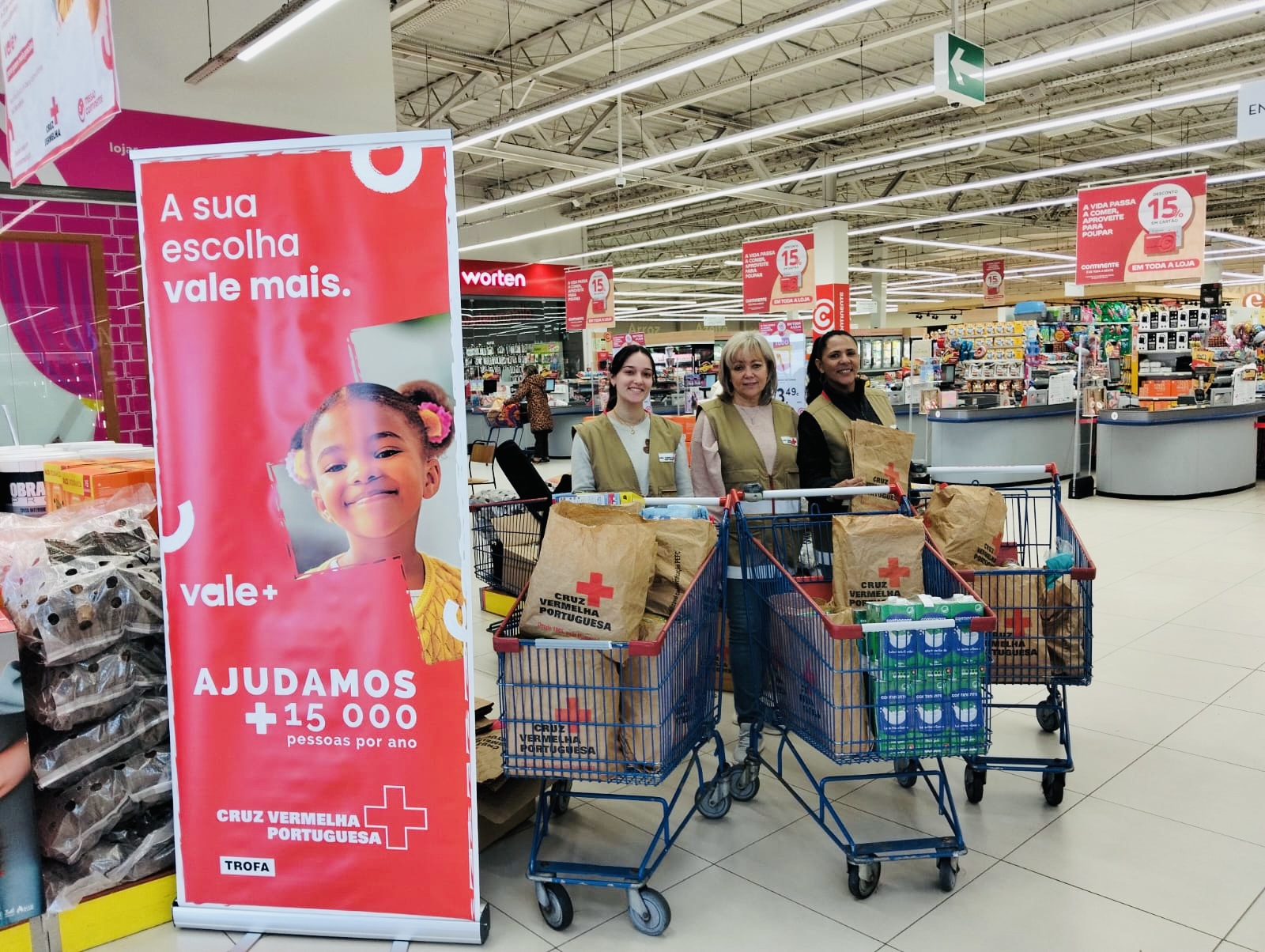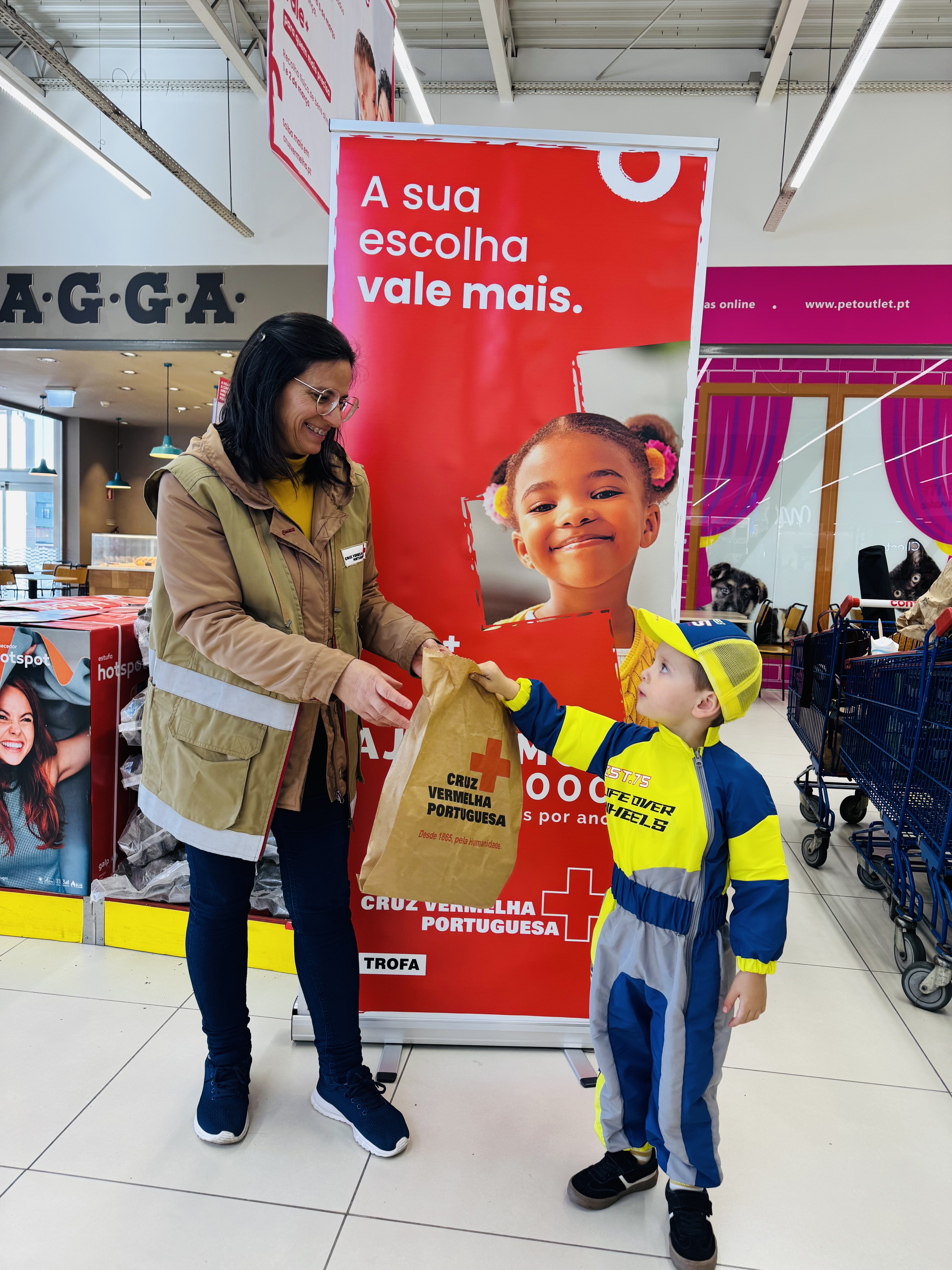 Estivemos, fisicamente, no Continente da Trofa, no Pingo Doce de Santiago de Bougado e de S.Romão do Coronado a fazer a recolha alimentar.